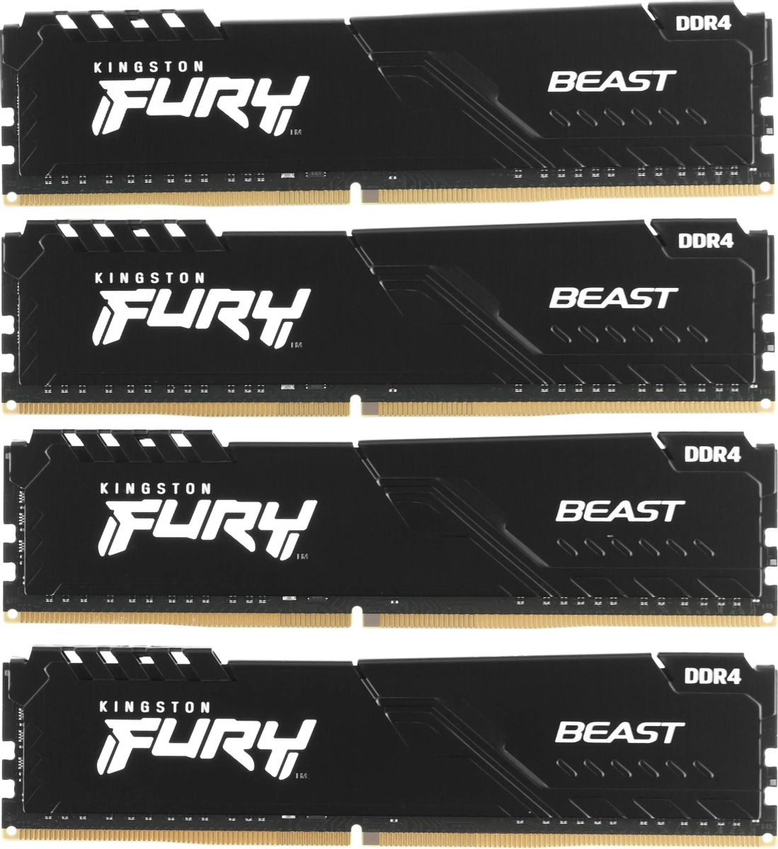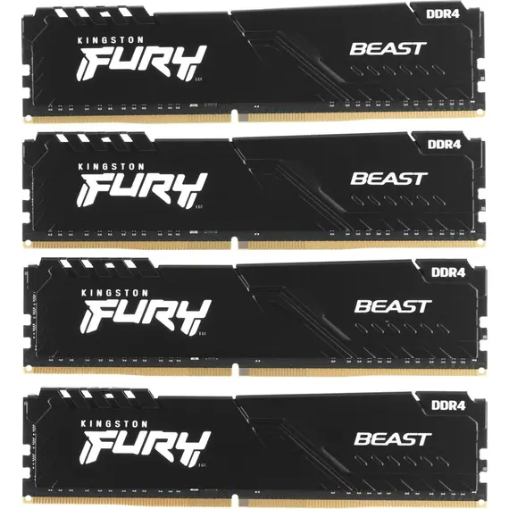 Комплект памяти KINGSTON 64 Гб, DDR4 DIMM, 3600 МГц, FURY Beast Black 4 модуля, 28800 Мб/с, CL18, 1.35 В, XMP, радиатор, 4x16Gb KIT (KF436C18BBK4/64)