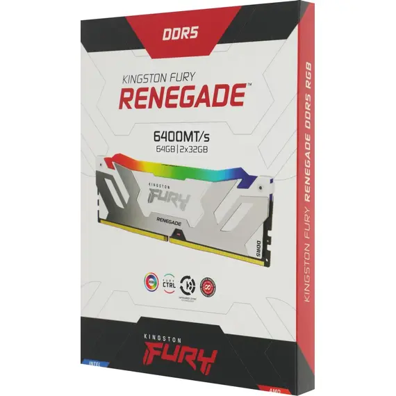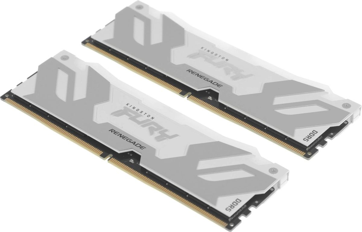 Комплект памяти KINGSTON 64 Гб, DDR5 DIMM, 6400 МГц, FURY Renegade RGB White 2 модуля, 51200 Мб/с, CL32, 1.4 В, радиатор, подсветка, 2x32Gb KIT (KF564C32RWAK2-64)