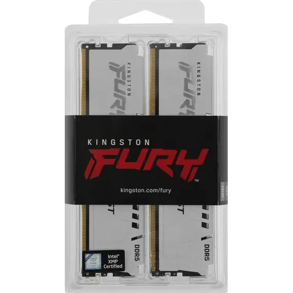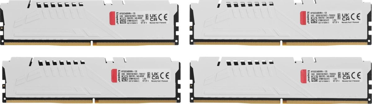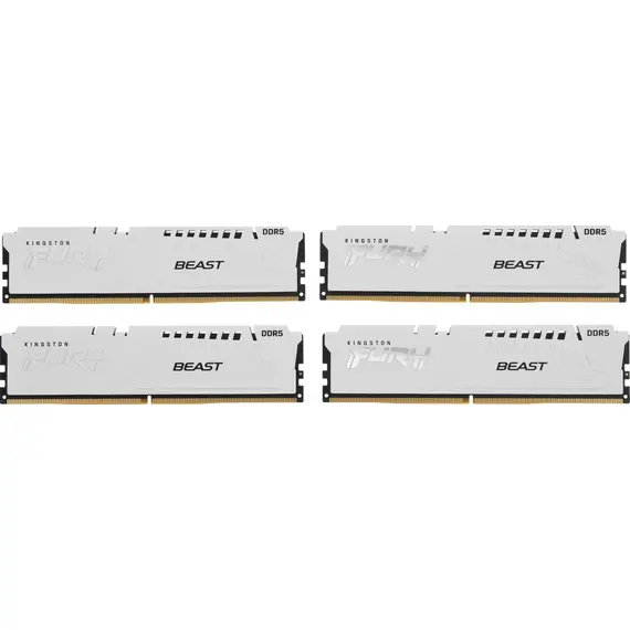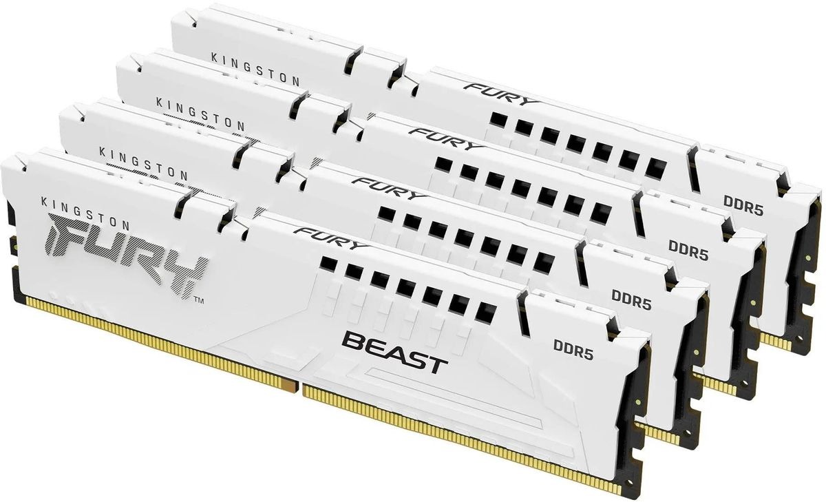 Комплект памяти KINGSTON 128 Гб, DDR5 DIMM, 5200 МГц, FURY Beast White 4 модуля, 41600 Мб/с, CL40, 1.25 В, XMP, радиатор, 4x32Gb KIT (KF552C40BWK4-128)