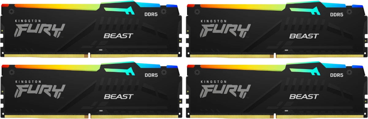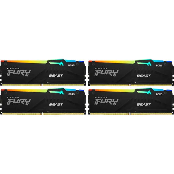 Комплект памяти KINGSTON 64 Гб, DDR5 DIMM, 6000 МГц, FURY Beast Black RGB 4 модуля, 48000 Мб/с, CL40, 1.35 В, XMP, радиатор, подсветка, 4x16Gb KIT (KF560C40BBAK4-64)