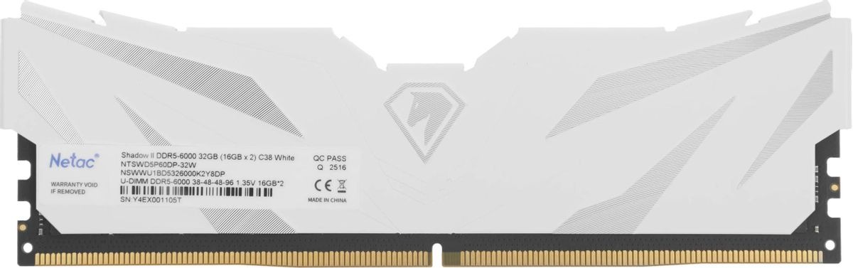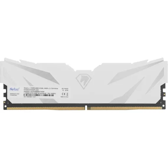 Комплект памяти NETAC 32 Гб, DDR5 DIMM, 6000 МГц, Shadow II White 2 модуля, 48000 Мб/с, CL38, 1.35 В, XMP, радиатор, 2x16Gb KIT (NTSWD5P60DP-32W)