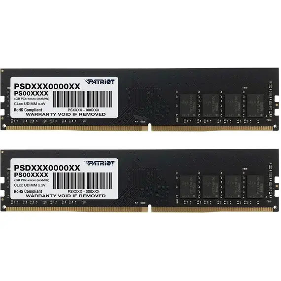 Комплект памяти PATRIOT MEMORY 16 Гб, DDR4 DIMM, 2666 МГц, Signature Line 2 модуля, 21300 Мб/с, CL19, 1.2 В, 2x8Gb KIT (PSD416G2666K)