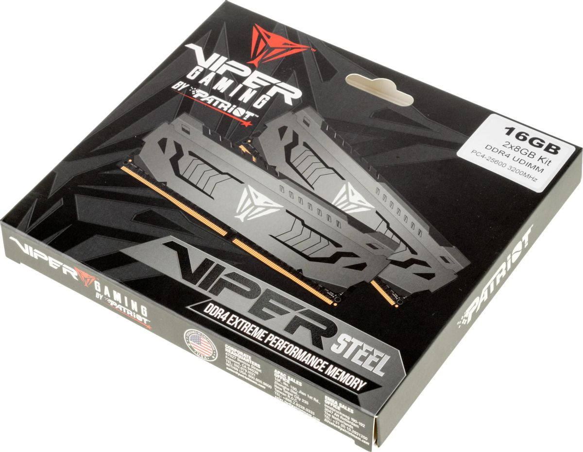 Комплект памяти PATRIOT MEMORY 16 Гб, DDR4 DIMM, 3200 МГц, Viper Steel 2 модуля, 25600 Мб/с, CL16, 1.35 В, радиатор, 2x8Gb KIT (PVS416G320C6K)