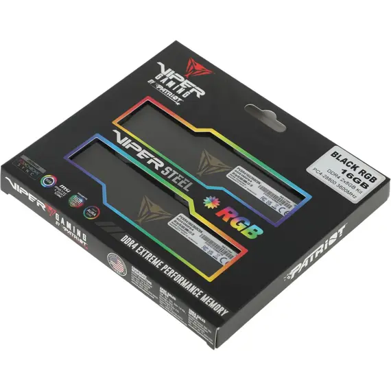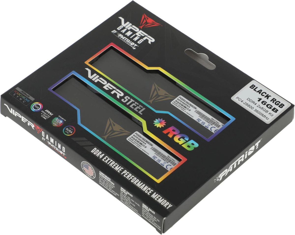 Комплект памяти PATRIOT MEMORY 16 Гб, DDR4 DIMM, 3600 МГц, Viper Steel RGB 2 модуля, 28800 Мб/с, CL20, 1.35 В, радиатор, подсветка, 2x8Gb KIT (PVSR416G360C0K)
