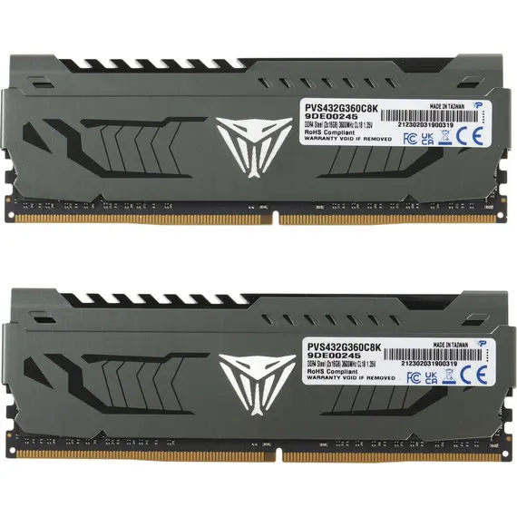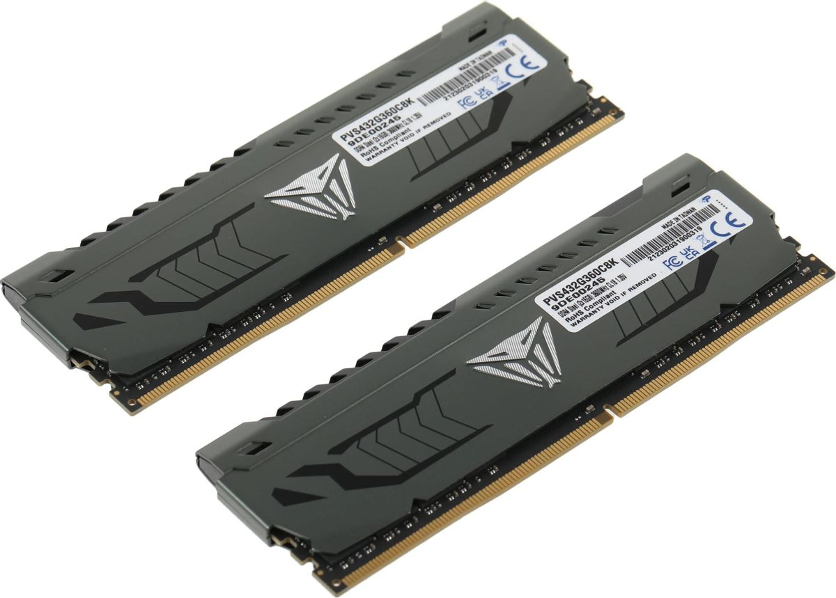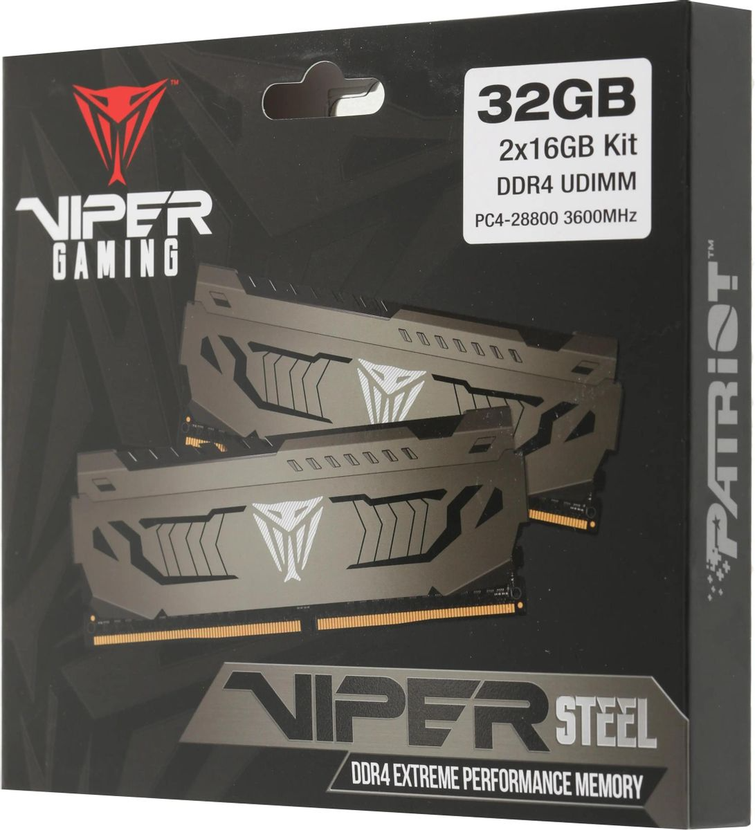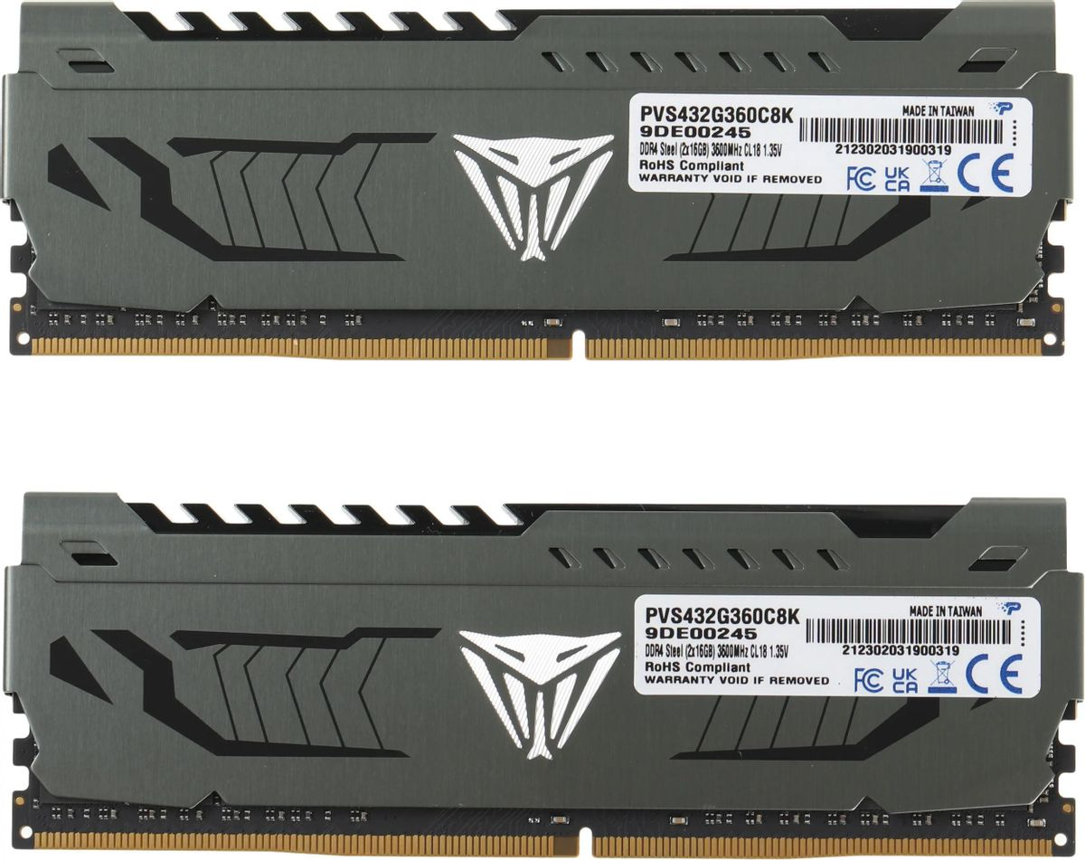 Комплект памяти PATRIOT MEMORY 32 Гб, DDR4 DIMM, 3600 МГц, Viper Steel 2 модуля, 28800 Мб/с, CL18, 1.35 В, радиатор, 2x16Gb KIT (PVS432G360C8K)
