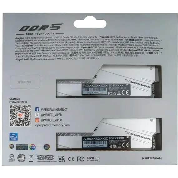 Комплект памяти PATRIOT MEMORY Viper Xtreme 5 RGB Mpower White 32 Гб — это инвестиция в абсолютную мощность, эксклюзивный стиль и безупречную производительность. Выбирая его, вы получаете самое технологичное и надежное решение для вашей топовой системы.
