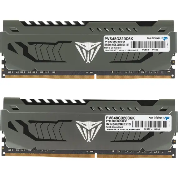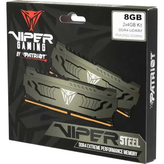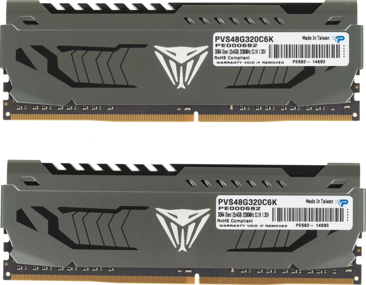 Комплект памяти PATRIOT MEMORY 8 Гб, DDR4 DIMM, 3200 МГц, Viper Steel 2 модуля, 25600 Мб/с, CL16, 1.35 В, радиатор, 2x4Gb KIT (PVS48G320C6K)