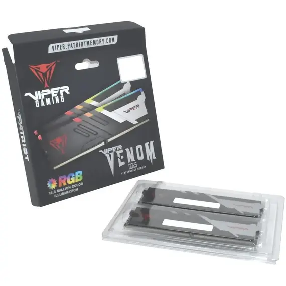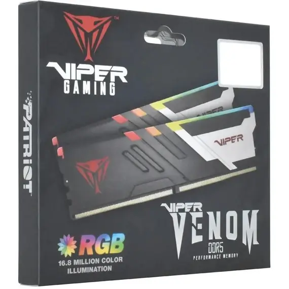 Комплект памяти PATRIOT MEMORY 48 Гб, DDR5 DIMM, 6000 МГц, Viper Venom RGB 2 модуля, 48000 Мб/с, CL30, 1.45 В, EXPO, XMP, радиатор, подсветка, 2x24Gb KIT (PVVR548G600C30K)