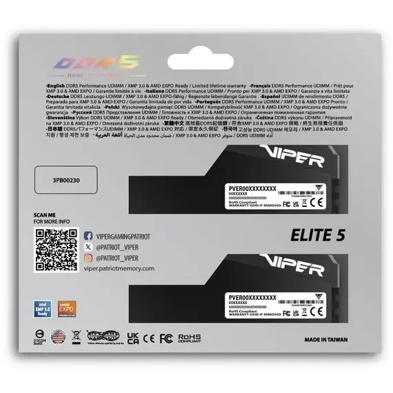 Комплект памяти PATRIOT MEMORY Viper Elite 5 Ultra Black 32 Гб — это инвестиция в абсолютную мощность, минималистичный стиль и безупречную производительность. Выбирая его, вы получаете самое технологичное и надежное решение для вашей топовой системы.