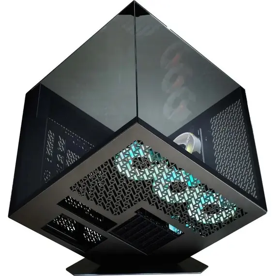 Корпус выполнен в форме куба — решение, которое редко встречается среди игровых и дизайнерских систем. Его строгий чёрный цвет и прозрачная боковая панель создают идеальный баланс между минимализмом и эффектностью. Такой корпус станет украшением любого рабочего или игрового пространства.