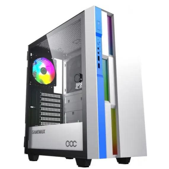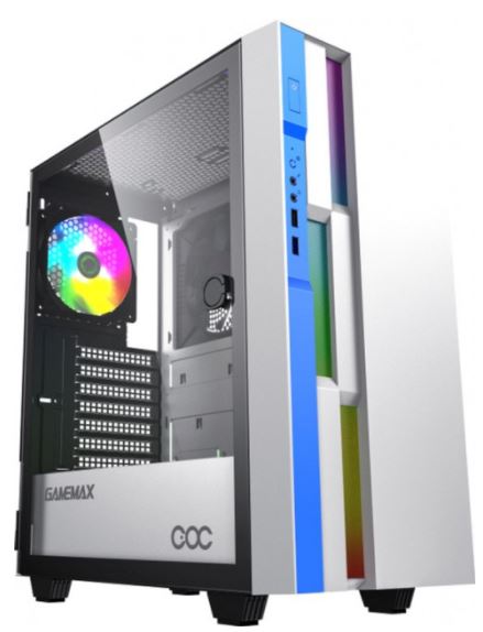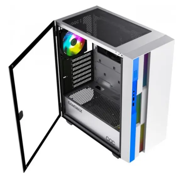 Корпус GAMEMAX Midi-Tower, без БП, с окном, подсветка, 2xUSB 3.0, ARGB, белый, синий (Brufen C3 WB)