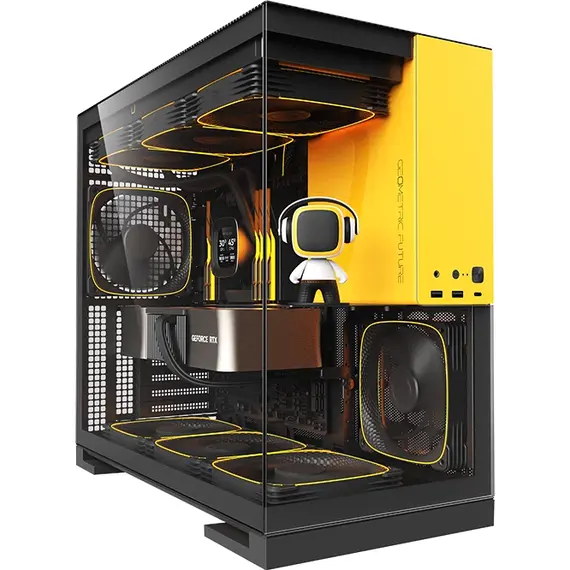 Geometric Future Model 5 ARGB Black Yellow with fans подходит для создания современных игровых или рабочих систем, требующих эффективного охлаждения и стильного внешнего вида.