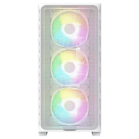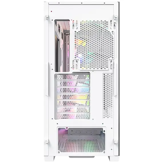 Материалы и дизайн: Белый корпус с боковой панелью из закаленного стекла, обеспечивающей элегантный внешний вид и возможность демонстрации компонентов.