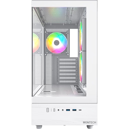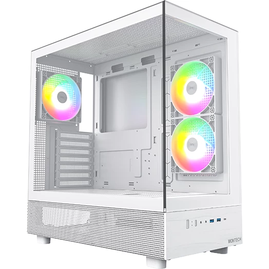 Корпус Montech XR White сочетает в себе стильный дизайн и функциональность, обеспечивая отличные возможности для охлаждения и расширения системы.