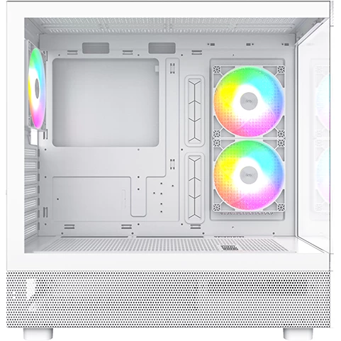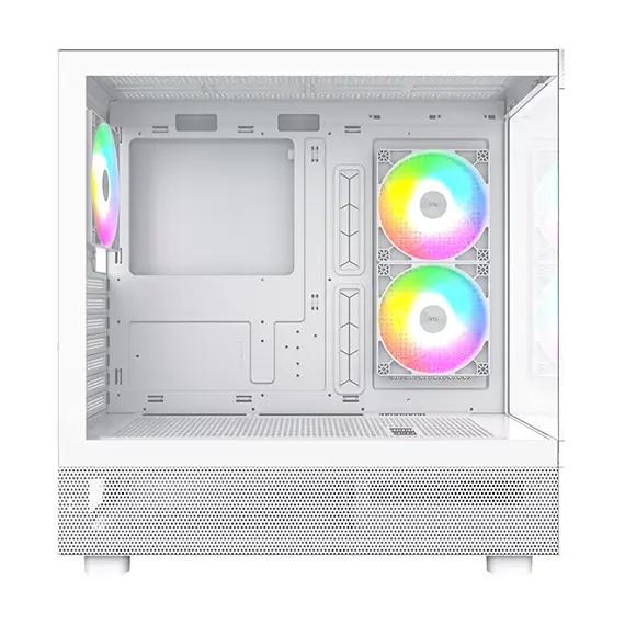 Охлаждение: Предустановлены три 120-мм ARGB PWM вентилятора, два из которых расположены на боковых панелях с обратным направлением лопастей для улучшенного воздушного потока, и один на задней панели. Возможность установки дополнительного радиатора до 360 мм на верхней панели.