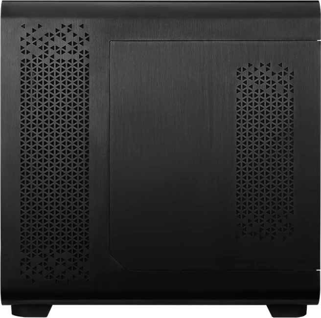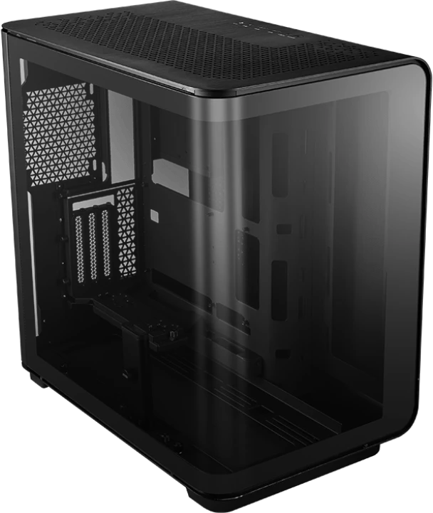Корпус выполнен в элегантном чёрном цвете, а его геометрия и материалы создают ощущение монолитности и силы. Большая стеклянная панель подчёркивает эстетичность и позволяет открыть полный вид на внутреннюю сборку. Это корпус, который не просто стоит на столе — он становится центральным элементом вашего рабочего или игрового пространства.