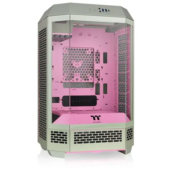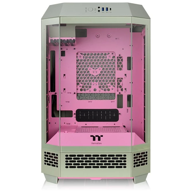 Корпус THERMALTAKE Micro-Tower, без БП, с окном, 2xUSB 3.0, 1xUSB Type-C, The Tower 300 Matcha Plum, зелёный с розовым (CA-1Y4-00SJWN-00)