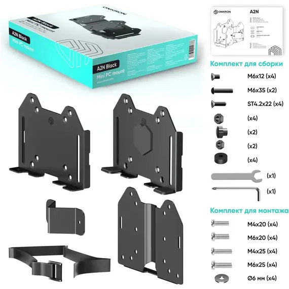 Универсальный адаптер ONKRON A2N позволяет размещать мини-ПК, смарт-боксы, роутеры, ресиверы, компьютерных аксессуаров.