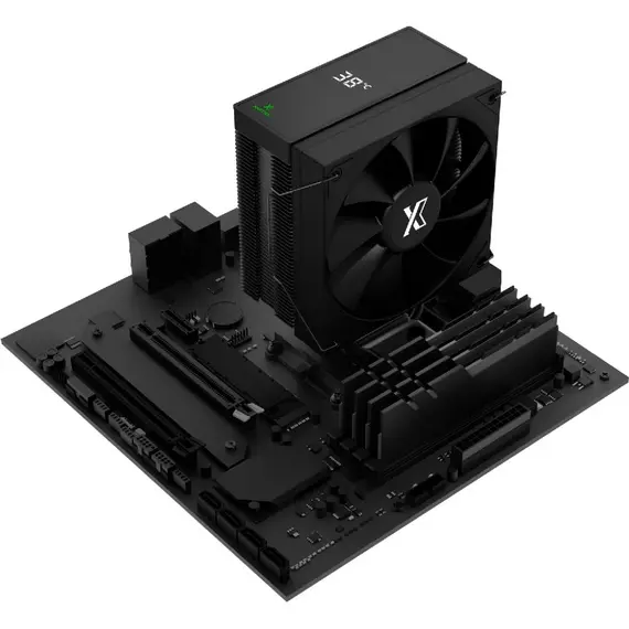 XASTRA AR400 DIGITAL BK — это высокоэффективный процессорный кулер башенного типа, оснащенный 120-мм вентилятором и цифровым дисплеем для отображения текущей температуры процессора. Он имеет четыре тепловые трубки с технологией прямого контакта (H.D.T), обеспечивающие эффективное отведение тепла. Кулер совместим с современными сокетами Intel (LGA 115x/1200, LGA 1700, 1851) и AMD (AM4, AM5). Максимальная рассеиваемая мощность (TDP) составляет 220 Вт, что позволяет использовать его с высокопроизводительными процессорами. Высота кулера — 155 мм, что делает его совместимым с большинством стандартных корпусов.