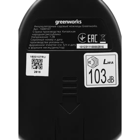Кусторез/ножницы аккумуляторные GREENWORKS 10 см, 7.2V (1600107)