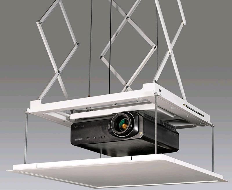 Этот лифт обеспечивает бесшумное и точное перемещение проектора, позволяя ему появляться только тогда, когда это необходимо, и полностью скрываться за подвесным потолком в нерабочем состоянии.