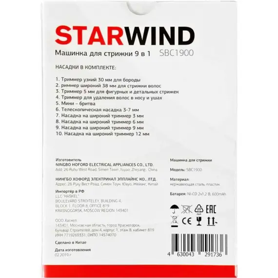 Описание Машинки Starwind SBC1900 обеспечивает точную и аккуратную стрижку Легкость в использовании обеспечивают 5 насадок. Все насадки легко снимаются и хранятся в контейнере. Материал насадок выполнен из высококачественной нержавеющей стали, позволяющие промывать насадки водой.