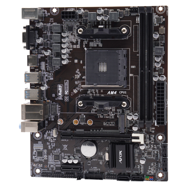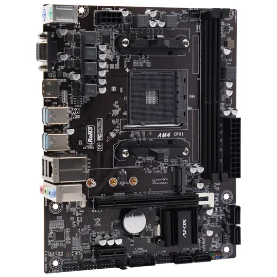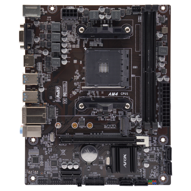 Материнская плата AFOX Socket AM4, AMD A520, 2xDDR4, PCI-E 3.0, 1xM.2, VGA, HDMI, mATX (A520D4-MA2-V2)