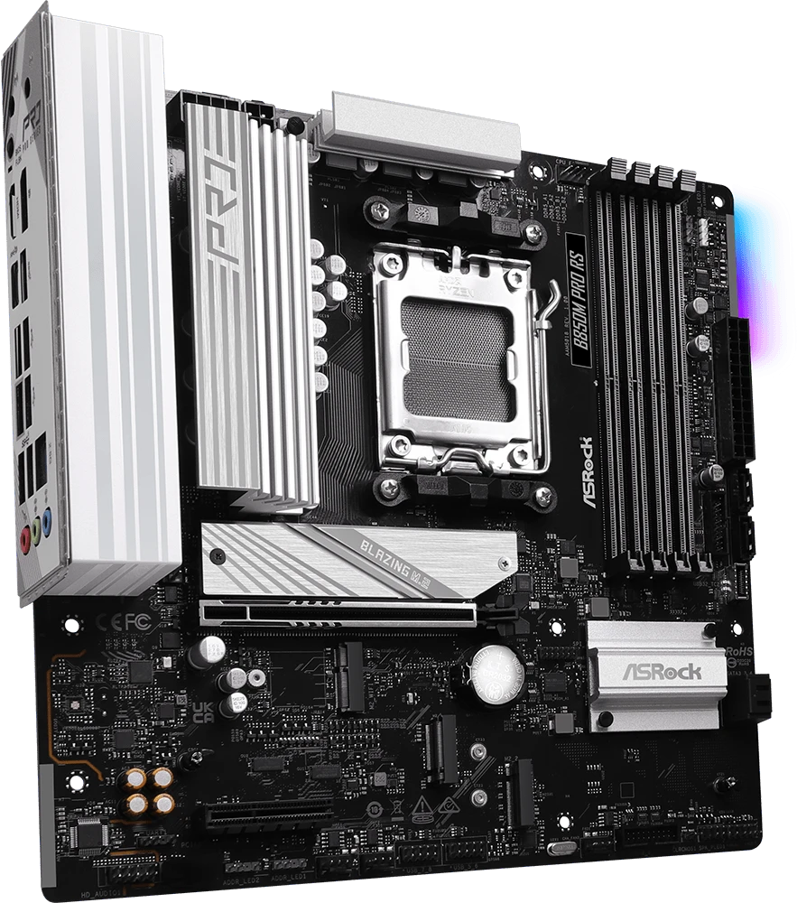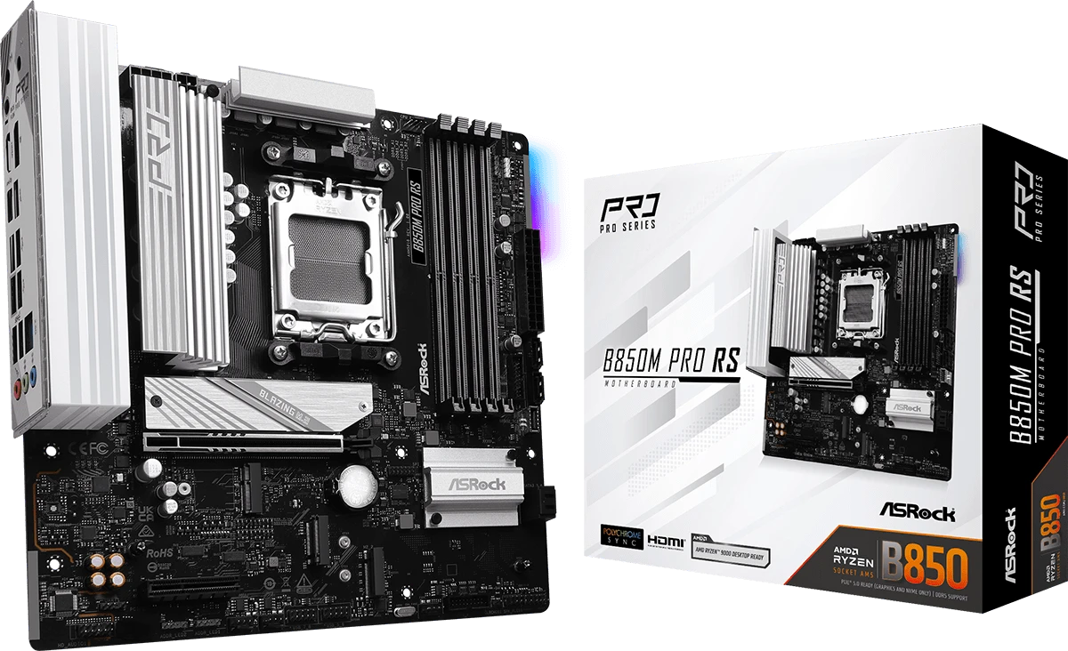 Материнская плата ASROCK Socket AM5, AMD B850, 4xDDR5, PCI-E 5.0, 3xM.2, HDMI, DisplayPort, mATX (B850M PRO RS)