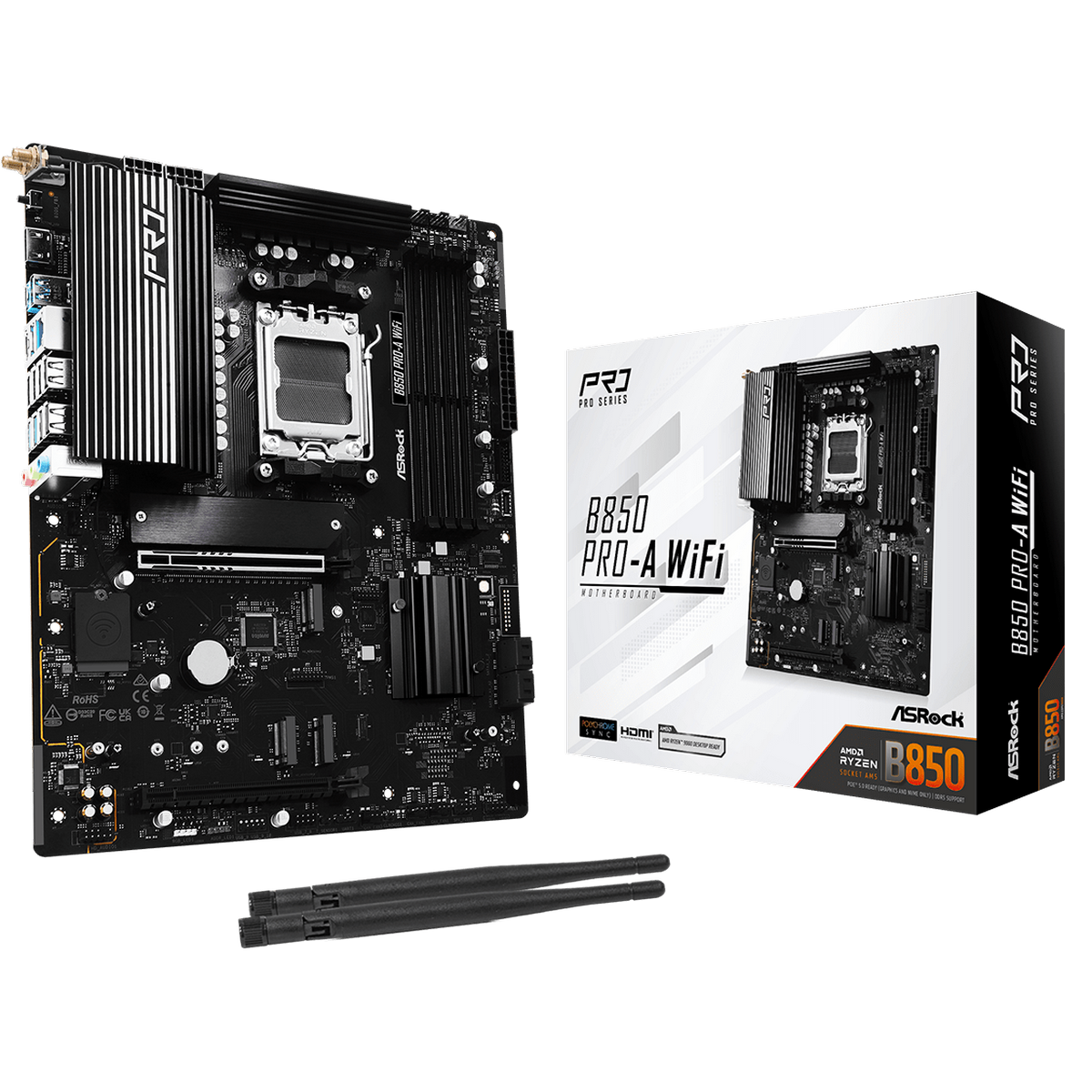B850 Pro-A WiFi - Серия Pro-A создана для повышенной стабильности, надёжности и эффективности. Она отличается устойчивой производительностью, удобными полезными функциями и чётким дизайном, что делает её идеальной для повседневных задач.