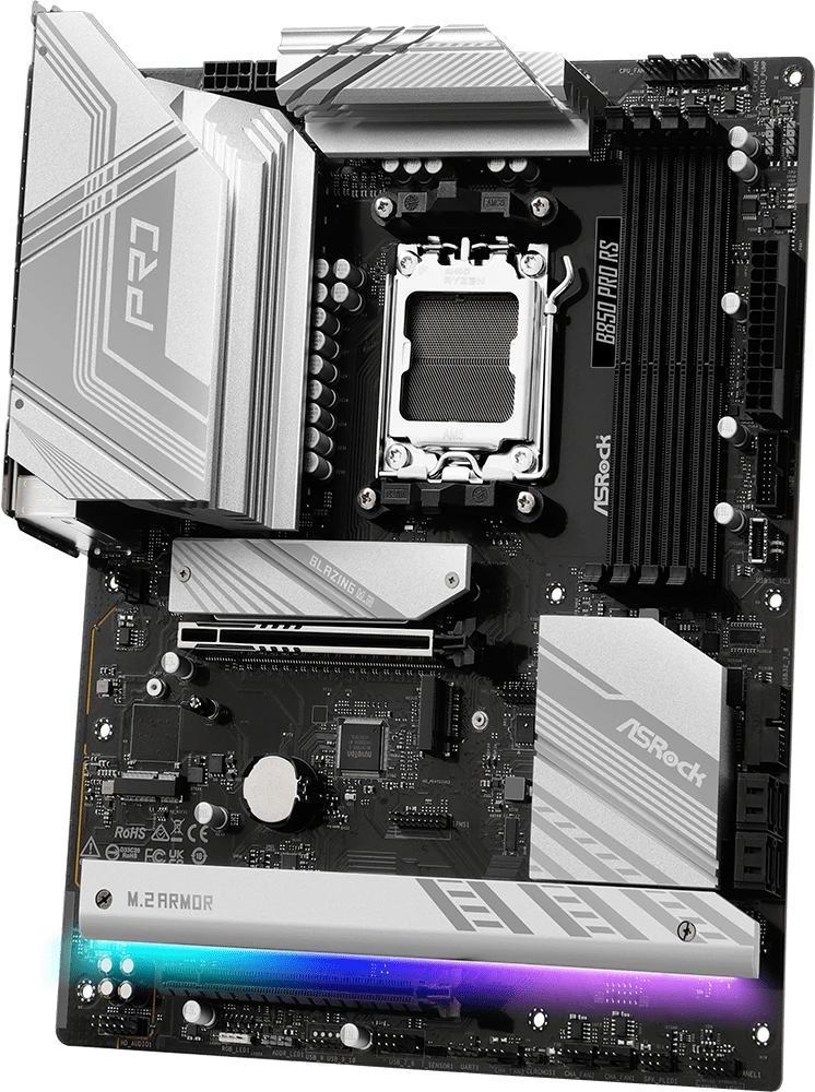 B850 Pro RS - Современная и футуристичная, идеально сбалансированная, с привлекательными спецификациями, Race Sport (RS) Edition – это результат эволюции самых популярных материнских плат серии PRO.