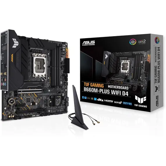 Материнская плата ASUS Socket 1700, Intel B660, 4xDDR4, PCI-E 5.0, 2xM.2, HDMI, DisplayPort, mATX (TUF GAMING B660M-PLUS WIFI D4)