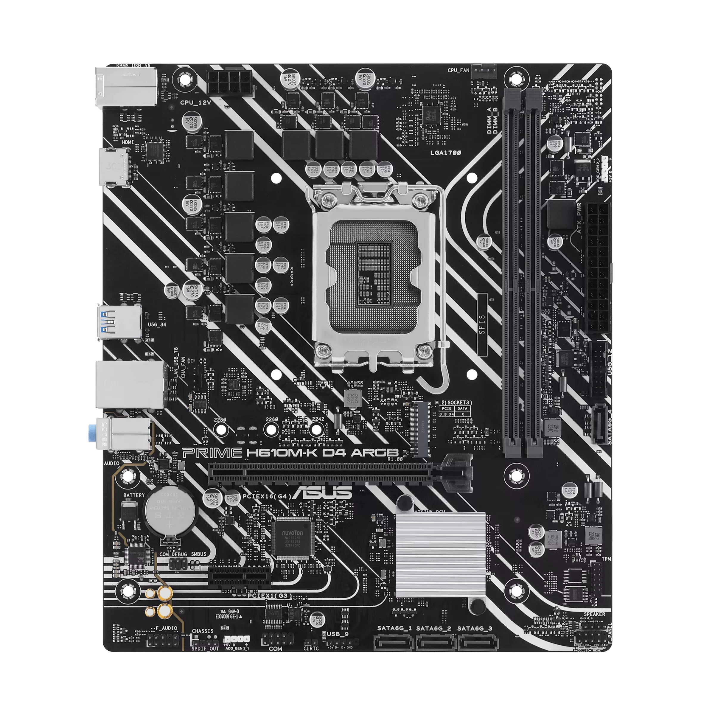 Материнская плата ASUS Socket 1700, Intel H610, 2xDDR4, PCI-E 4.0, 1xM.2, HDMI, PS/2, mATX (PRIME H610M-K D4 ARGB)