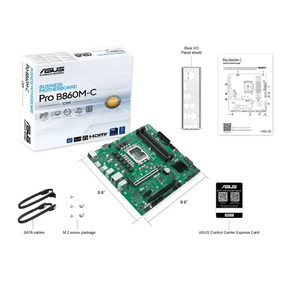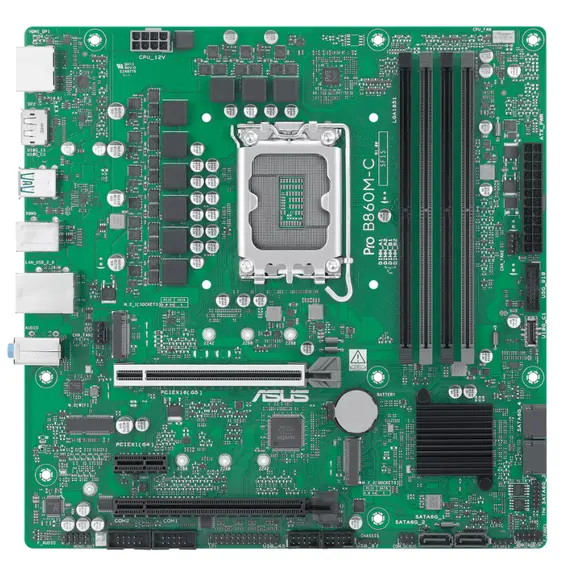 Материнская плата ASUS Socket 1851, Intel B860, 4xDDR5, PCI-E 4.0, 2xM.2, HDMI, 2xDisplayPort, mATX (PRO B860M-C-CSM)