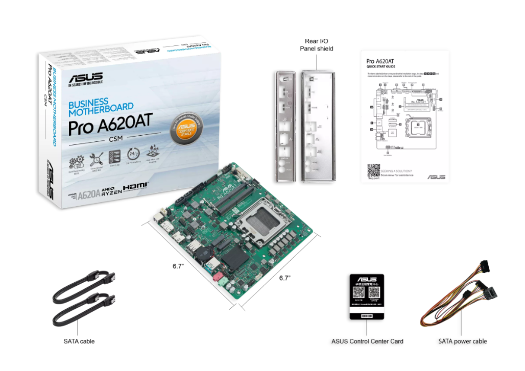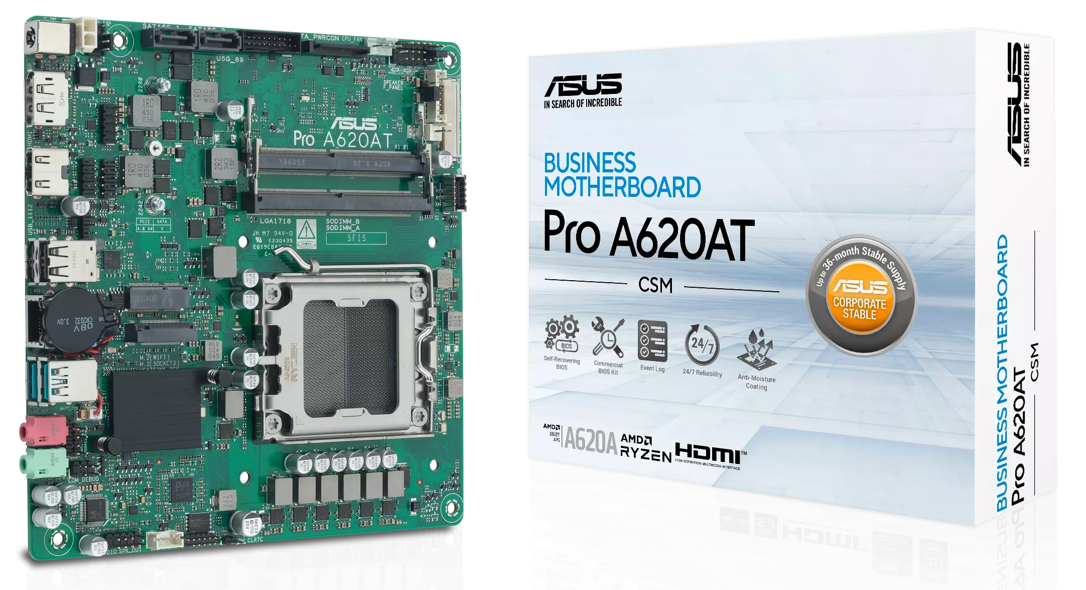 Asus (PRO A620AT-CSM) - Thin mini-ITX материнская плата для бизнеса с повышенной безопасностью, надежностью, управляемостью и эффективностью.