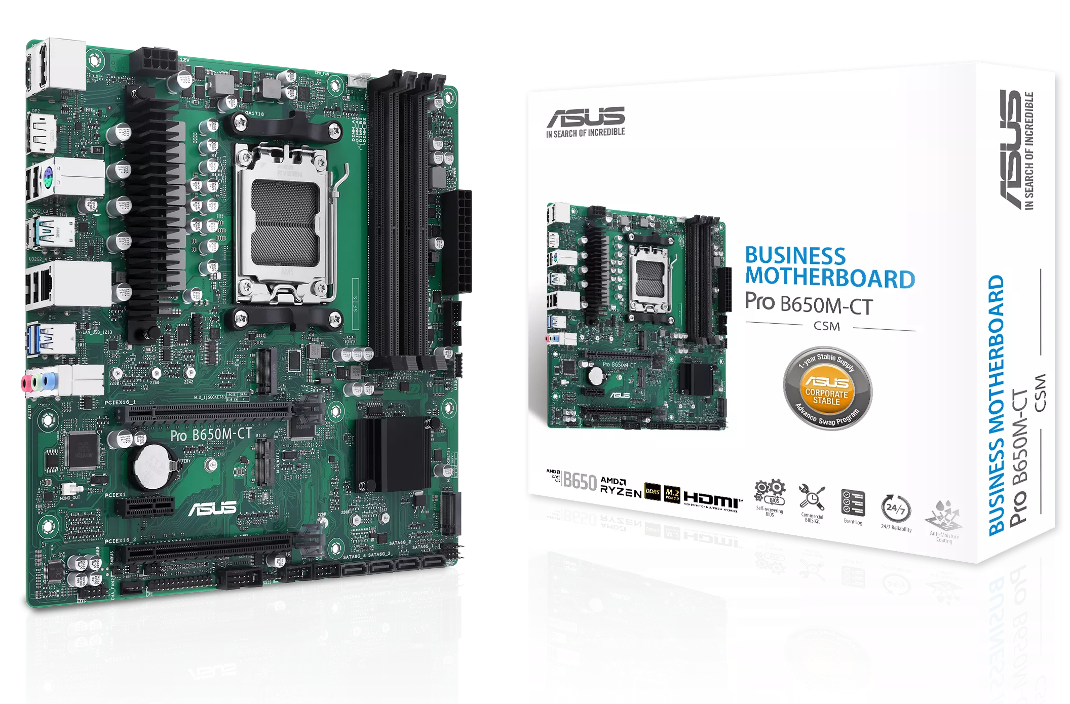 Плата ASUS PRO B650M-CT-CSM разработана с акцентом на долговечность и функции, необходимые для бизнес-среды и круглосуточной работы.