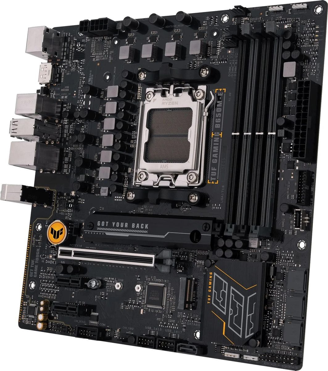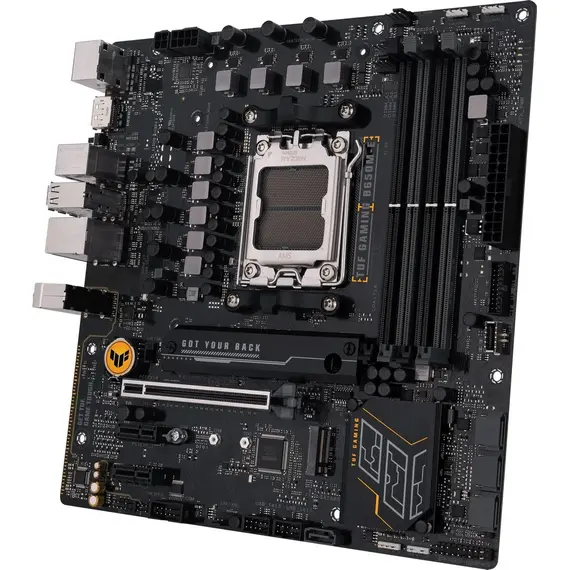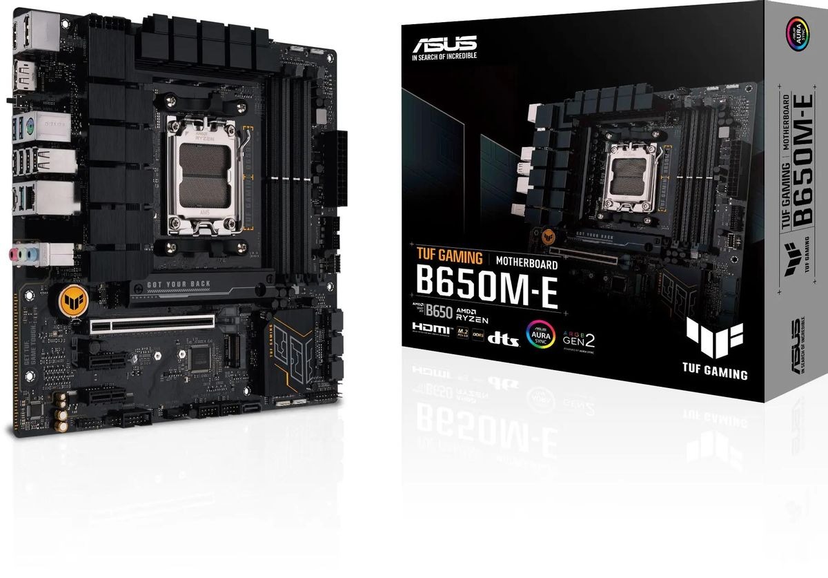 Материнская плата ASUS Socket AM5, AMD B650, 4xDDR5, PCI-E 4.0, 2xM.2, HDMI, DisplayPort, PS/2, mATX (TUF GAMING B650M-E)