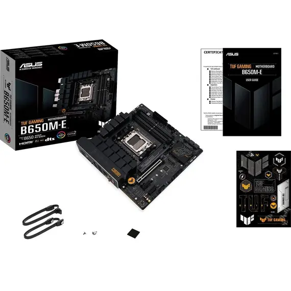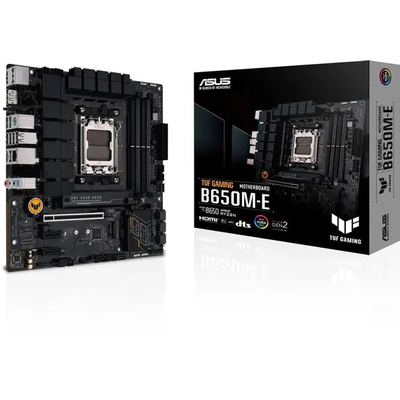 Материнская плата ASUS TUF GAMING B650M-E — это надежное и производительное mATX-решение, разработанное для геймеров и энтузиастов, которые ищут отличное сочетание производительности, долговечности и современного функционала по доступной цене. Она идеально подходит для создания высокопроизводительной игровой системы на базе новейших процессоров AMD Ryzen 7000 и 8000 серий, предлагая проверенную временем платформу AM5, поддержку стандарта PCIe 4.0 и надежные компоненты серии TUF Gaming.