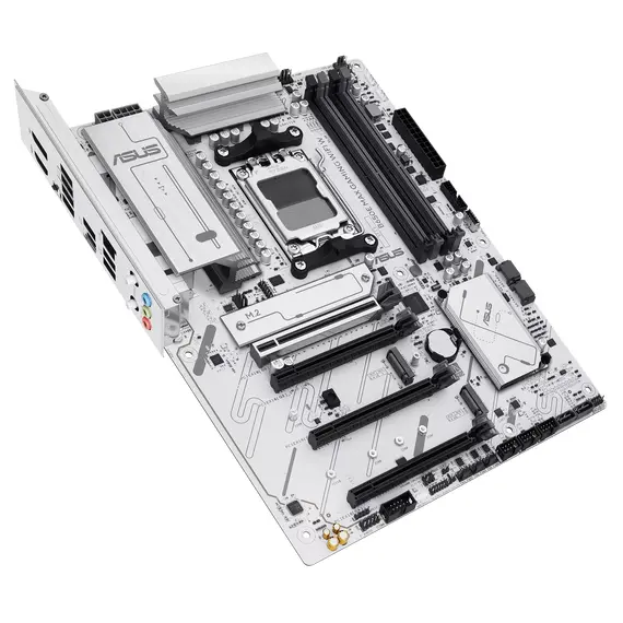 Материнская плата ASUS B650E MAX GAMING WIFI (модель W, вероятно, означает белый или светлый дизайн) — это высокопроизводительное ATX-решение, разработанное для создания мощной игровой системы на базе новейших процессоров AMD Ryzen 7000 и 8000 серий с сокетом AM5. Она предлагает впечатляющий набор функций, включая поддержку новейшего стандарта PCIe 5.0, память DDR5 и интегрированные модули беспроводной связи Wi-Fi 6E и Bluetooth, а также отличительный светлый дизайн.