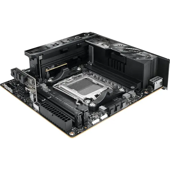 Плата ROG STRIX X870-I GAMING WIFI сочетает в себе агрессивный геймерский дизайн серии ROG Strix с бескомпромиссной функциональностью и мощностью в миниатюрном корпусе.