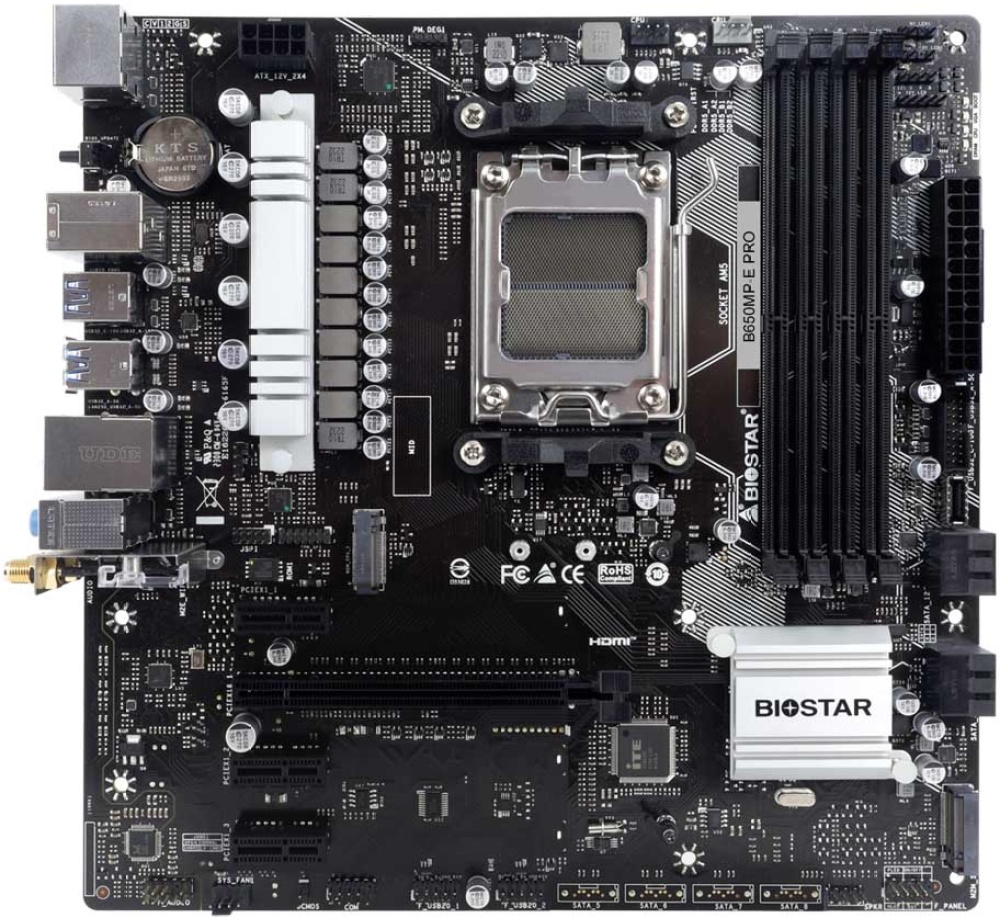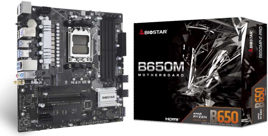 Материнская плата BIOSTAR Socket AM5, AMD B650, 4xDDR5, PCI-E 4.0, 2xM.2, HDMI, DisplayPort, PS/2, mATX (B650MP-E PRO)