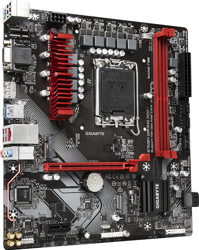 Материнская плата GIGABYTE Socket 1700, Intel B760, 2xDDR4, PCI-E 4.0, 2xM.2, VGA, HDMI, DisplayPort, PS/2, mATX (B760M GAMING DDR4)