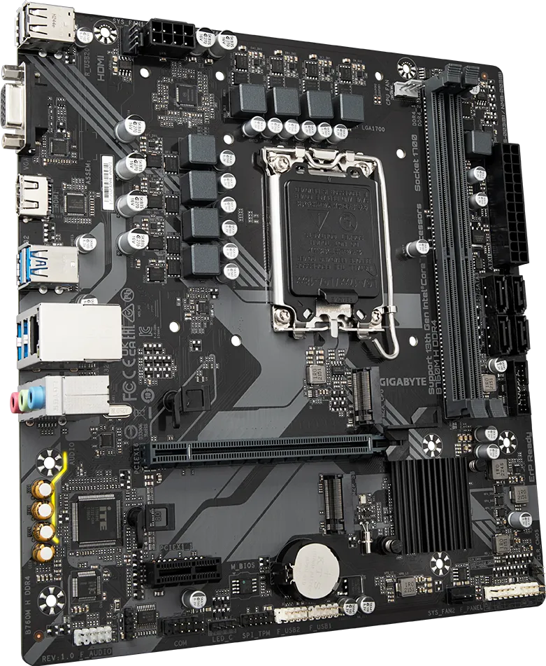 Материнская плата GIGABYTE Socket 1700, Intel B760, 2xDDR4, PCI-E 4.0, 2xM.2, VGA, HDMI, mATX (B760M H DDR4)