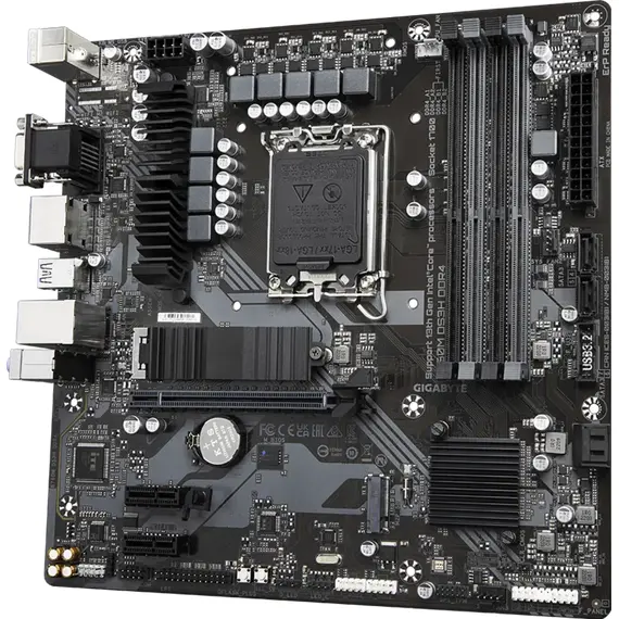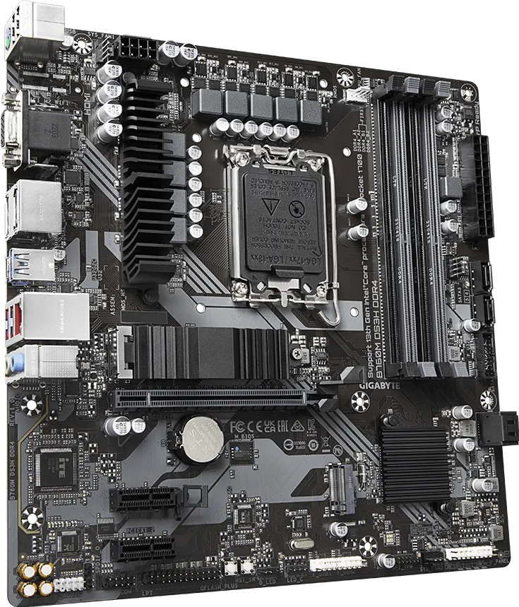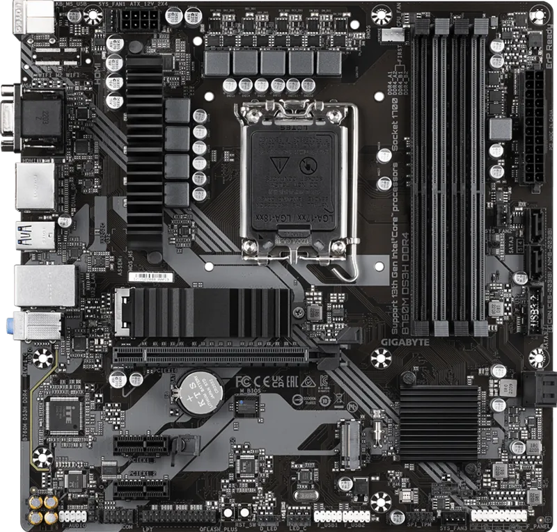 Материнская плата GIGABYTE Socket 1700, Intel B760, 4xDDR4, PCI-E 4.0, 2xM.2, VGA, HDMI, DisplayPort, PS/2, mATX (B760M DS3H DDR4)