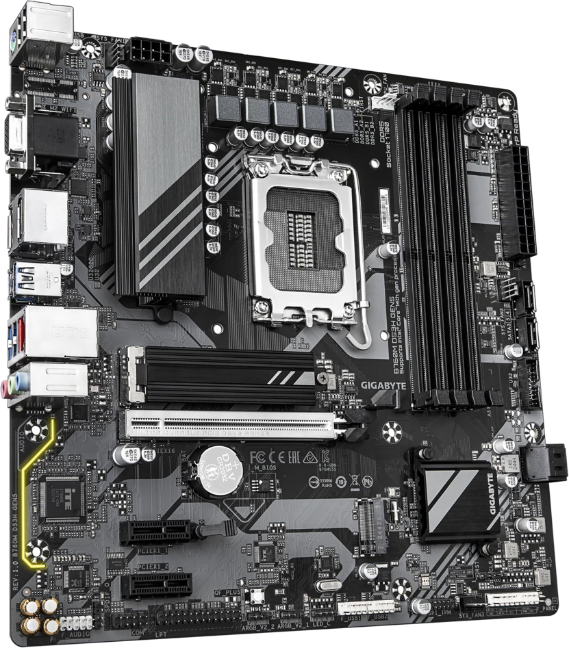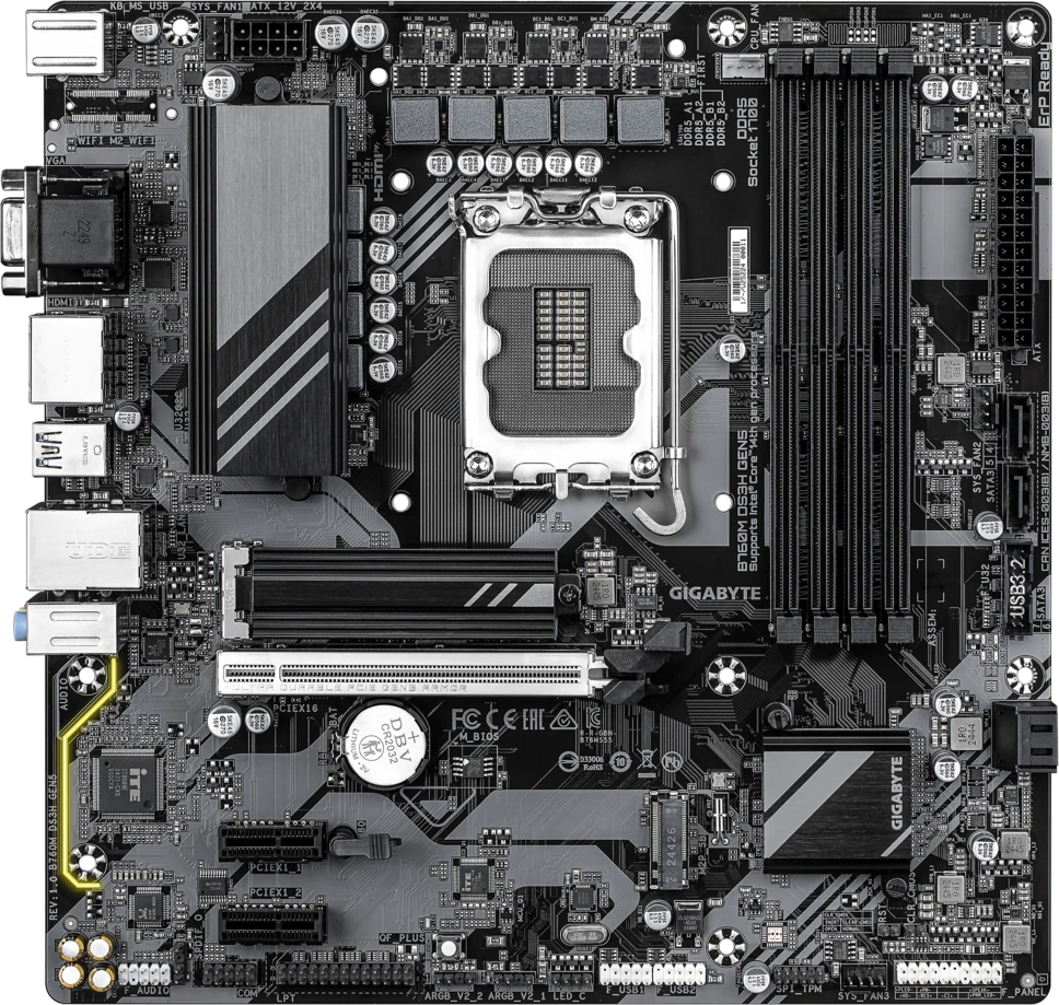 Материнская плата GIGABYTE Socket 1700, Intel B760, 4xDDR5, PCI-E 5.0, 2xM.2, VGA, HDMI, 2xDisplayPort, mATX (B760M DS3H GEN5)