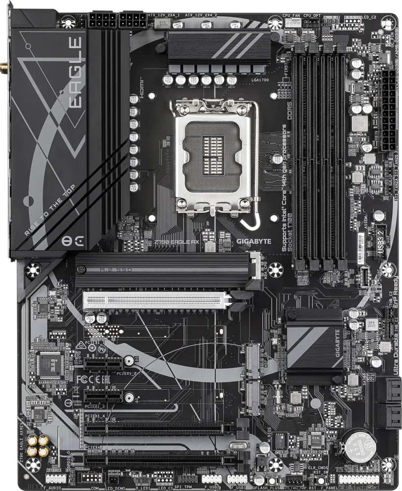 Материнская плата GIGABYTE Socket 1700, Intel Z790, 4xDDR5, PCI-E 4.0, 3xM.2, HDMI, DisplayPort, PS/2, Wi-Fi+Bluetooth, ATX (Z790 EAGLE AX)