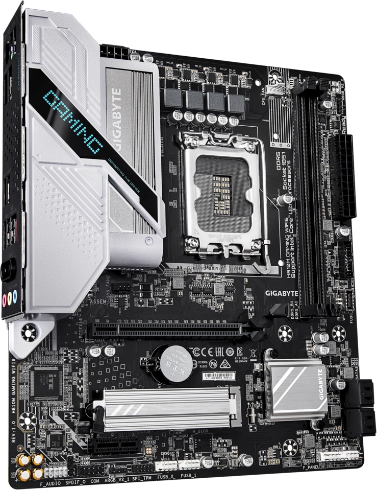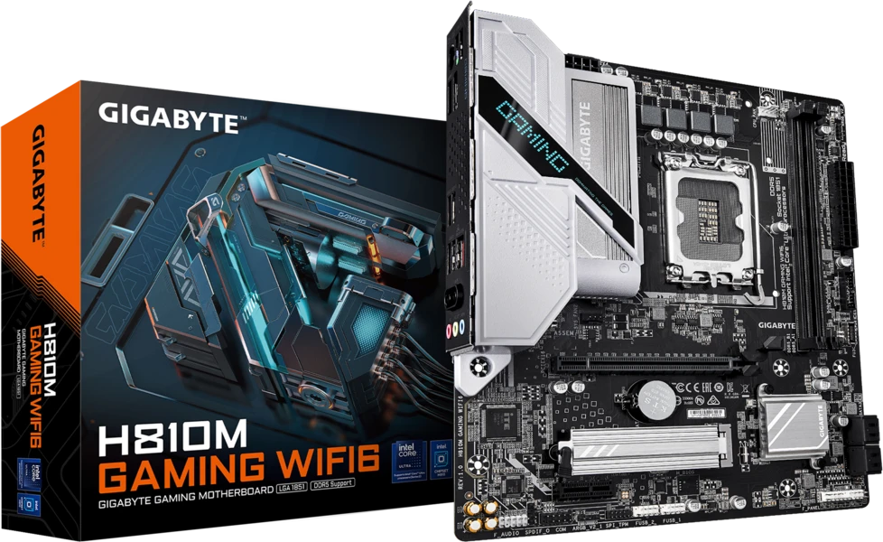 Материнская плата GIGABYTE Socket 1851, Intel H810, 2xDDR5, PCI-E 4.0, 1xM.2, HDMI, DisplayPort, mATX (H810M GAMING WIFI6)