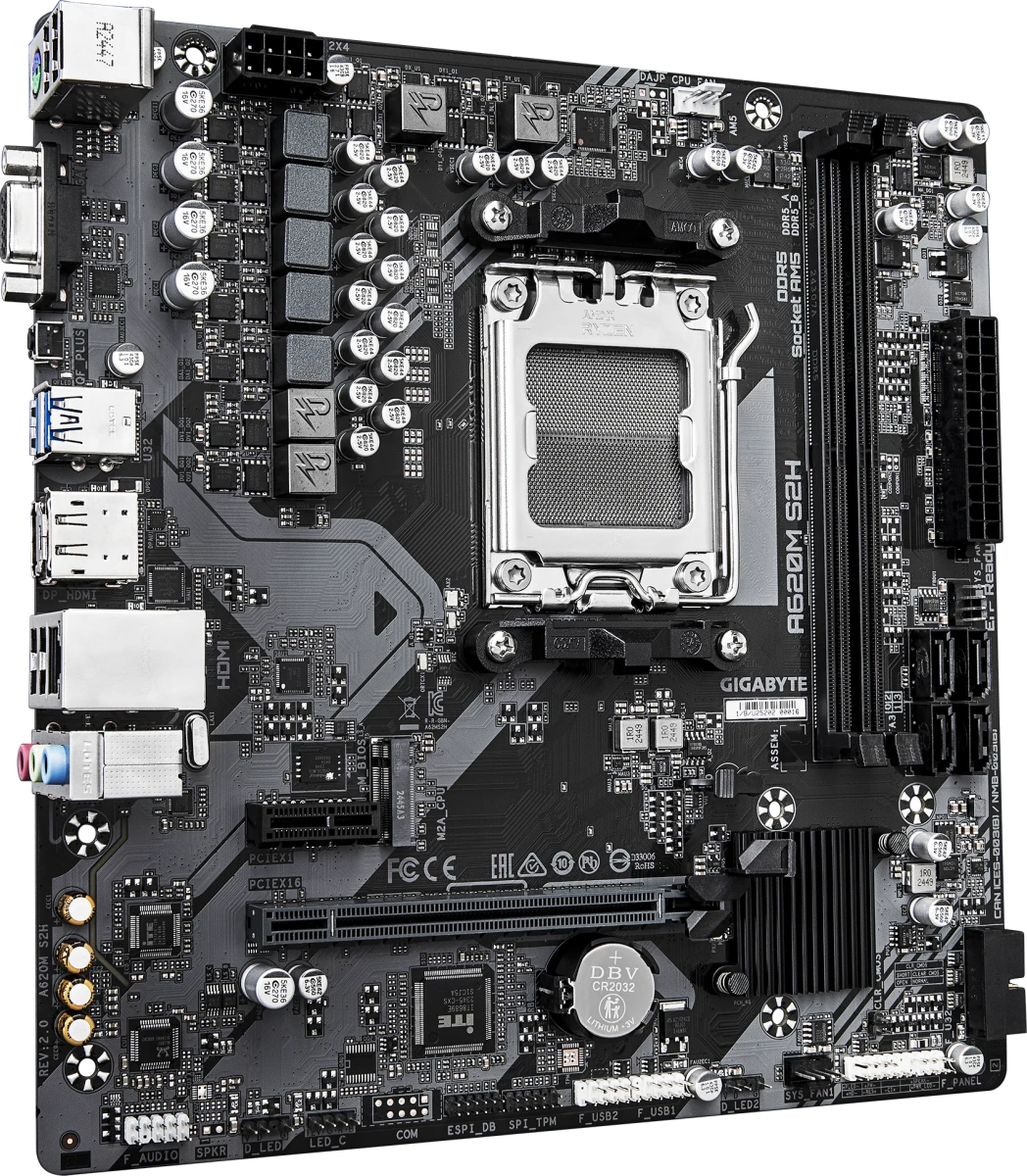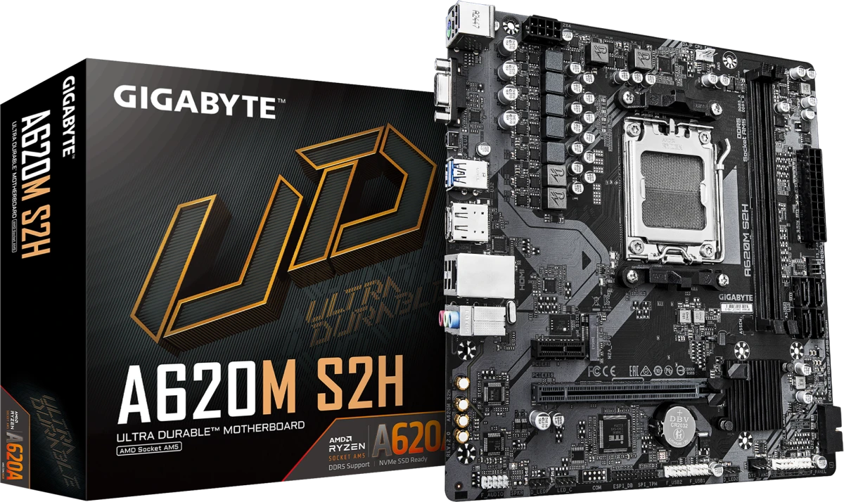 Материнская плата GIGABYTE Socket AM5, AMD A620A, 2xDDR5, PCI-E 4.0, 1xM.2, VGA, HDMI, DisplayPort, mATX (A620M S2H 2.0)