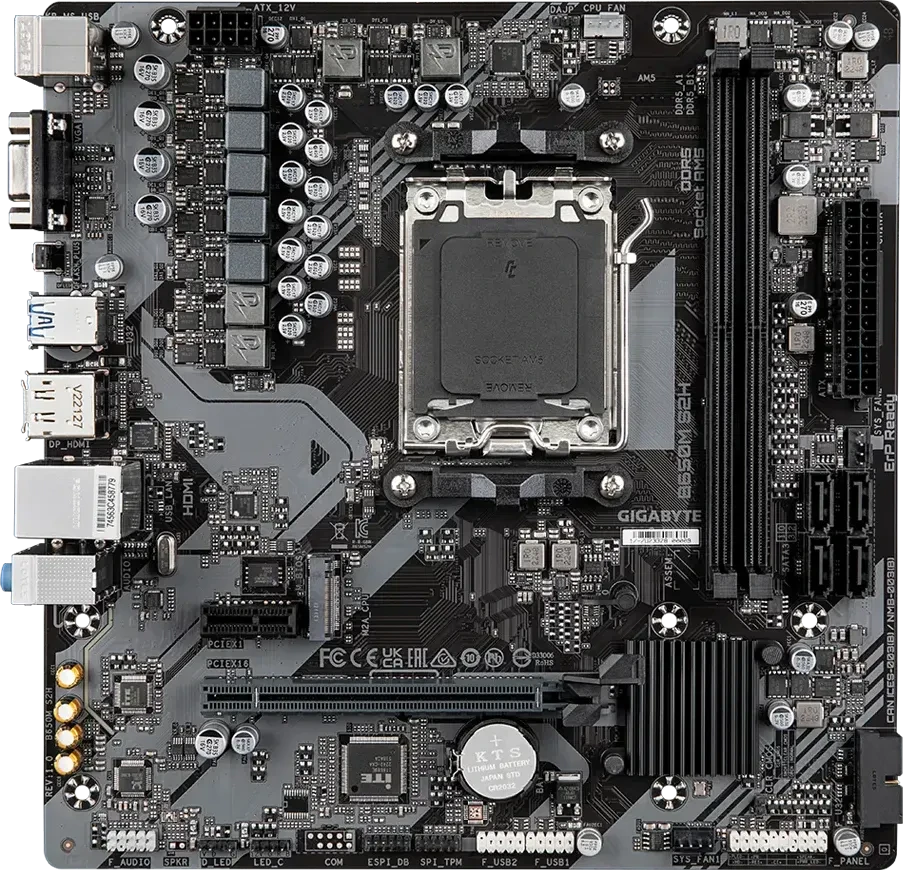 Материнская плата GIGABYTE Socket AM5, AMD B650, 2xDDR5, PCI-E 4.0, 1xM.2, VGA, HDMI, DisplayPort, mATX (B650M S2H 1.4)