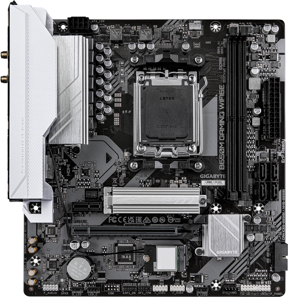 Gigabyte B650M GAMING WIFI6E — это игровая материнская плата формата Micro-ATX для процессоров AMD Ryzen 7000/8000 (Socket AM5). Оснащена стабильной системой питания, двумя слотами M.2 PCIe 4.0, Wi-Fi 6E и 2.5Gb Ethernet. Идеальный баланс цены и производительности для игровой или мультимедийной сборки.