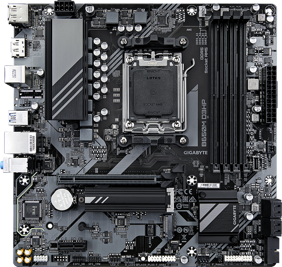 Материнская плата GIGABYTE Socket AM5, AMD B650, 4xDDR5, PCI-E 4.0, 2xM.2, HDMI, DisplayPort, PS/2, mATX (B650M D3HP)